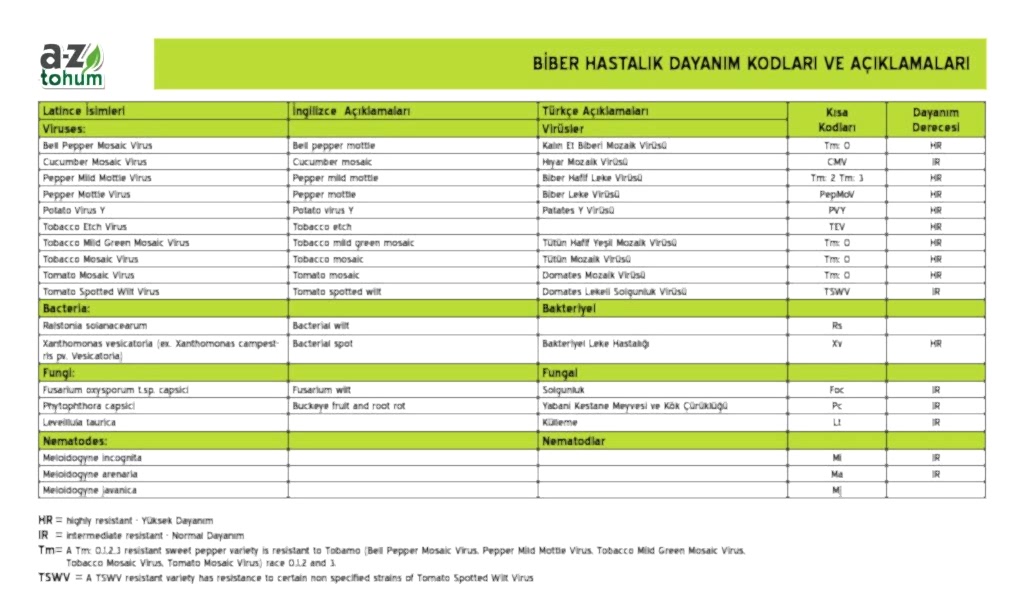 Biber Hastalık Dayanımları